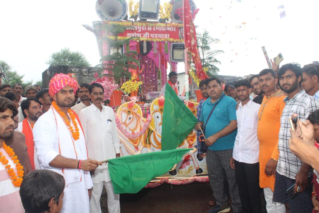 करौली। ग्राम पंचायत ससेडी के गांव अकोलपुरा से रविवार को रणथंभौर के गणेशजी मंदिर के लिए पदयात्रा को बहुजन समाज पार्टी के प्रत्याशी एडवोकेट रविन्द्र मीना ने हरी झंडी दिखाकर रवाना किया। इस दौरान पदयात्रियों ने उनका माला और साफा पहनाकर स्वागत सम्मान किया।