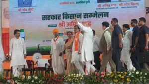 उन्होंने किसानों से आगामी विधानसभा और लोकसभा चुनावों में भाजपा को जिताने के लिए किसान सम्मेलन में संकल्प लेकर जाने की अपील की । इस दौरान अमित शाह ने केंद्र सरकार द्वारा किसानों के लिए संचालित की जा रही विभिन्न योजनाओं का जिक्र करते हुवे कहा कि मोदी सरकार किसानों के साथ है और किसानों के सम्मान और किसानों को समृद्ध व आत्मनिर्भर बनाने के लिए काम कर रही है । इस दौरान लोकसभा अध्यक्ष ओम बिड़ला ने भी किसानों को संबोधित किया और किसानों से सम्बंधित योजनाओं की जानकारी किसानों को दी । कहने को तो इफको द्वारा आयोजित सहकार किसान सम्मेलन सरकारी कार्यक्रम था ,लेकिन भाजपा ने इसका राजनीति दृष्टि से भी भरपूर फायदा उठाया और केंद्रीय गृहमंत्री अमित शाह ने कार्यक्रम के माध्यम से किसानों को साधने का भरपूर प्रयास किया । गौरतलब है कि साल 2018 के विधानसभा चुनावों में भाजपा को पूर्वी राजस्थान में करारी शिकस्त झेलनी पड़ी थी । ऐसे में भाजपा इस बार के विधानसभा चुनावों में पूर्वी राजस्थान में कोई कोर कसर नही छोड़ना चाहती । जिसके चलते भाजपा द्वारा पूर्वी राजस्थान को साधने का पुरा प्रयास किया जा रहा है । गंगापुरसिटी में आयोजित सहकार किसान सम्मेलन भी इसी कड़ी में एक प्रयास है । वही भाजपा 2 सितंबर को रणथंभौर के त्रिनेत्र गणेश मन्दिर से परिवर्तन यात्रा का आगाज करने जा रही है । जो पुर्वी राजस्थान के सभी विधानसभा क्षेत्रों से गुजरेगी । भाजपा की परिवर्तन यात्रा को राष्ट्रीय अध्यक्ष जेपी नड्डा हरीझंडी दिखाकर रवाना करेंगे । अमित शाह के बाद जेपी नड्डा का 2 सितंबर को रणथंभौर आना भाजपा की पूर्वी राजस्थान में पकड़ मजबूत करने का प्रयास रहेगा । आज गंगापुरसिटी में आयोजित कार्यक्रम में केंद्रीय गृह मंत्री अमित शाह ,लोकसभा अध्यक्ष ओम बिड़ला के साथ ही राज्यसभा सांसद डॉक्टर किरोडी लाल मीणा ,सांसद सुखबीर सिंह जौनापुरिया ,नेताप्रतिपक्ष राजेन्द्र सिंह राठौड़ ,जसकोर मीणा ,मनोज राजौरिया ,जितेंद्र गोठवाल , रमेश मीणा आदि भाजपा नेता मंच पर मौजूद रहे ।
