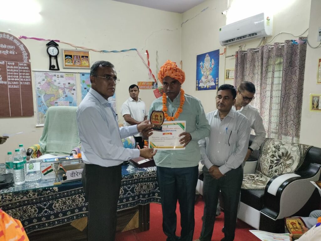 भामाशाह शिक्षक रामप्रसाद मीना ने सरकारी स्कूल में 5.30लाख रू की लागत से कमरा बनाया,सीडीईओ ने किया सम्मानित।
