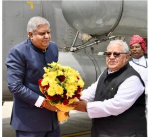 राज्यपाल ने उपराष्ट्रपति श्री धनखड़ और उनकी धर्मपत्नी श्रीमती सुदेश धनखड़ का बुके भेंट कर स्वागत किया। कृषि मंत्री श्री लालचंद कटारिया ने भी उनका स्वागत किया।
