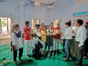 राजस्थान एक्सप्रेस न्यूज़ |नादौती उपखंड स्तरीय युवा महोत्सव शुभारम्भ सीबीओ हरिचरण मीना ने सरस्वती के चित्रपट के समक्ष दीपप्रज्वलित कर किया। राजकीय उच्च माध्यमिक विद्यालय में आयोजित युवा महोत्सव में संगीत वादन, चित्रकला ,सामूहिक नृत्य, ड्रामा, पोस्टर लेखन, नारा लेखन आदि प्रतियोगिताएं आयोजित की गई। शिक्षक चंद्रभानसिंह राजपूत ने बताया कि निर्णायक मंडल जिसमें प्रधानाचार्य हेमराज मीना, नीलम शर्मा, शिवराज मीना, विक्रम मीना ने सामूहिक नृत्य प्रतियोगिता में महात्मा गांधी विद्यालय नादौती को, ड्रामा में स्वामी विवेकानंद राजकीय मॉडल स्कूल नादौती, संगीत वादन में प्रेरणा गौड़, नारा लेखन तथा पोस्टर प्रतियोगिता में चिरावंडा विद्यालय के विद्यार्थीयों को विजेता घोषित किया। विजेता विद्यार्थियों को मुख्य अतिथि सीबीईओ हरिचरण मीना, नोडल प्रधानाचार्य कमलराम मीना ने स्मृति चिन्हत किया। विजेता विद्यार्थी 17 अगस्त को जिला स्तरीय युवा महोत्सव करौली में भाग लेंगे। गौरतलब है कि ब्लॉक स्तरीय युवा महोत्सव के तहत विभिन्न प्रतियोगिताओं में भाग लेने के लिए 200 ने रजिस्ट्रेशन कराया था। महोत्सव में मात्र 55 ही संभागियों ने भाग लिया। एसीबीईओ मुकेश मीणा, व्याख्याता मुकेश गुप्ता, गोपाल गुप्ता ,चंद्रभान सिंह, यतेंद्रसिंह, अमित कुमार आदि मौजूद थे।