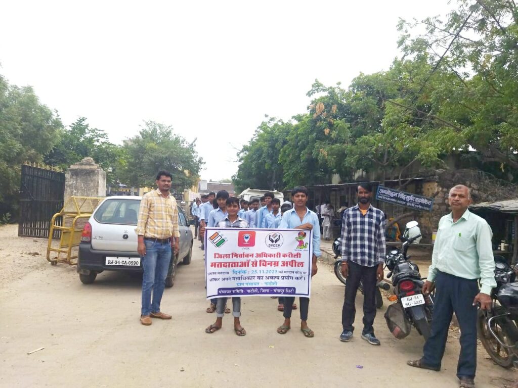 25 नवंबर को राजस्थान मे होने वाले विधानसभा चुनाव में शत प्रतिशत मतदान को लेकर राजकीय उच्च माध्यमिक विद्यालय, नादौती से मतदाता जागरूकता रैली का आयोजन किया गया। नादौती सरपंच रमेशचंद महावर तथा प्रधानाचार्य मुकेश गुप्ता ने हरी झंडी दिखाकर रैली को रवाना किया। रैली ग्राम पंचायत, तहसील कार्यालय, एसडीएम कार्यालय, बस स्टैंड तथा नादौती के प्रमुख मार्गो से होती हुई पंचायत समिति पहुंची जहां पर 18 वर्ष के नव मतदाताओं का माला पहनाकर स्वागत किया गया । विकास अधिकारी विक्रम सिंह गुर्जर ने लोकतंत्र के इस महापर्व मे सभी मतदाताओं से मतदान करने की अपील की। रैली में बीएलओ चंद्रभान सिंह ,यतेंद्र सिंह ,ग्राम विकास अधिकारी कैलाशचंद गुप्ता,विश्राम मीणा,विरदीचंद व हरेंद्र कोली सहित विद्यालय के छात्र छात्रा मतदाता जागरूकता संबंधी नारे लगाते हुए चल रहे थे।